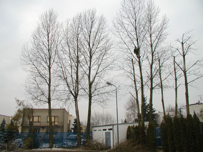 - "ogławianie" czyli skracanie bocznych wierzchołkowych konarów w koronach drzew